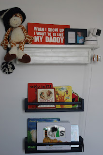 *Every morning when Jax gets to the playroom he heads straight for his books (which are currently on a small table) and with a big 'ole grin on his face, little friend proceeds to pull down every book. Sometimes he pretends to read them and other times he pushes them around on the floor, throws them and pushes them to me to read. But I love it because he genuinely does love books.